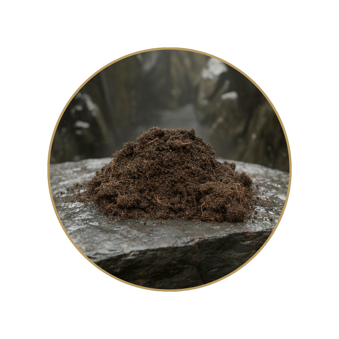 Äkta Shilajit utvinns in för hand och renas varsamt med vatten och solljus, utan kemikalier. På så sätt bevaras alla naturliga och bioaktiva ämnen.
